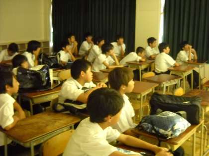 雨でグラウンドが使えないために、視聴覚室でビデオを見て戦術などの勉強です。