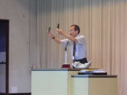 校長先生のお話では、自ら栽培したゴーヤを見せて(自慢して)環境についてのお話です。