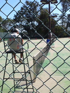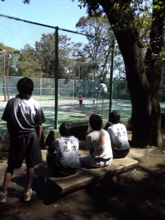 今日は藤森公園テニス場で団体戦す。恩方中はまず審判をしていました。