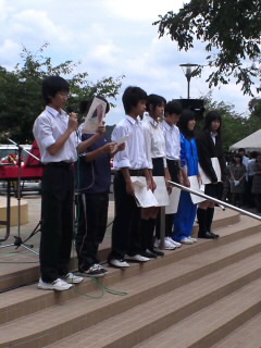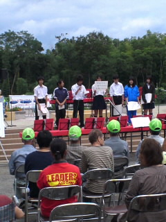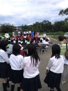 生徒会役員が恩方中学校の取り組みを発表しました。