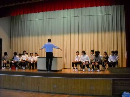 放課後体育館で、明日行われる立会演説会の打ち合わせを行いました。
