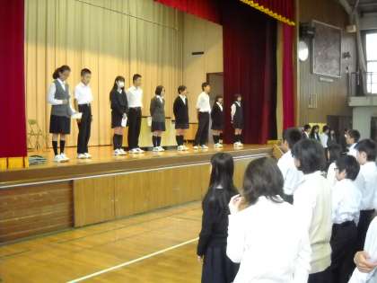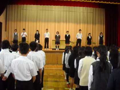 各種委員長が3年生主体の、最後の生徒会朝礼でした。