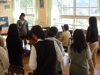 奥山先生の指導で、合唱祭の曲の練習が始まっています。