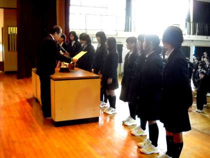 続いてソフトボール部の「市内女子ソフトボール大会 準優勝」の表彰がありました。