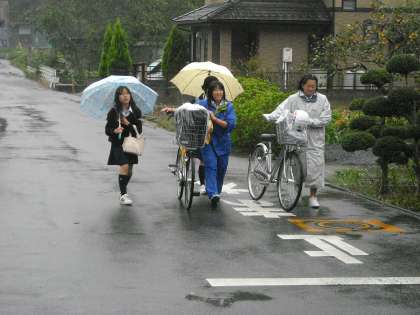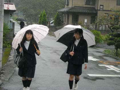 雨の朝も生徒は元気に登校して来ます。