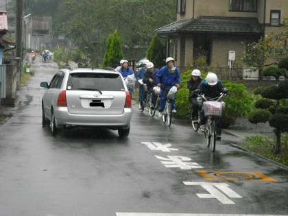 陣馬街道も正門前の道も交通量が多いので気を付けましょう!