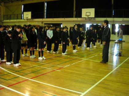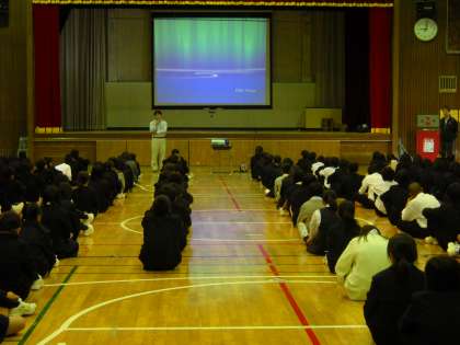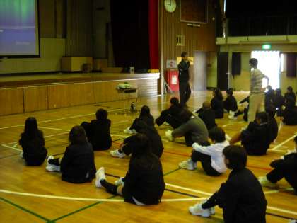 1時間目に体育館で、学年全体で道徳の授業を行いました。