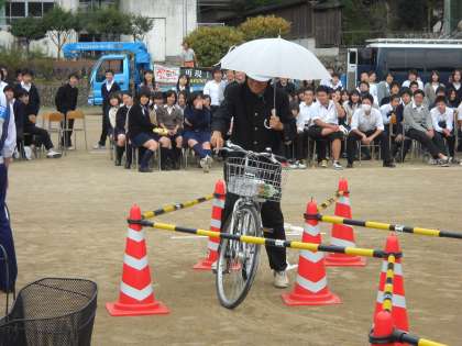 あえてよくない乗り方をして、危険を体験します。