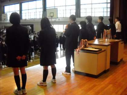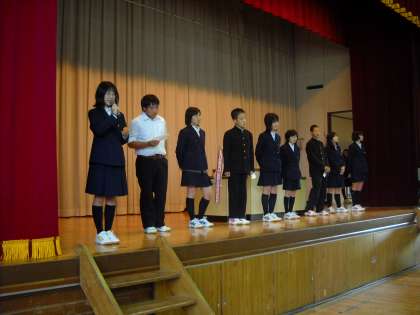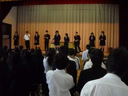 体育館で後期の生徒会役員による、生徒会朝礼が行われました。