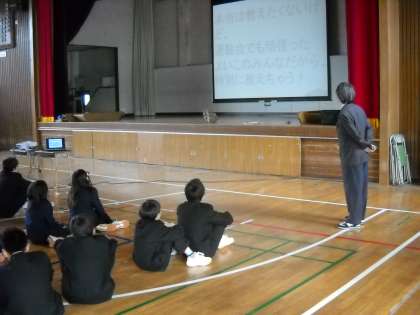 1時間目に、合唱祭に向けての心構えやこれからの練習方法などについて、佐々木先生からの指導がありました。