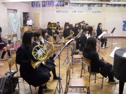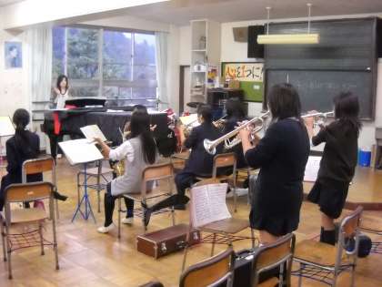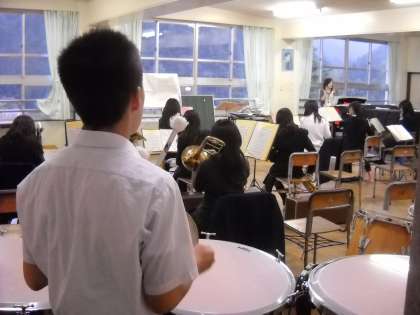 顧問の奥山先生の指導で「学園天国」の練習です。