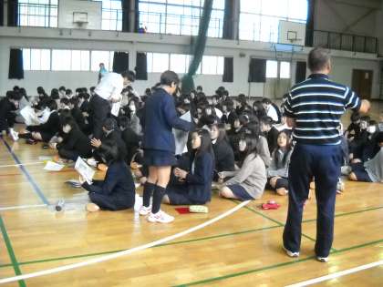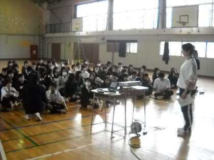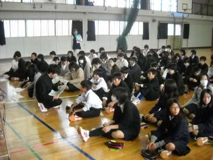 6時間目に体育館で、校外学習のための事前学習を行いました。
