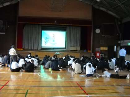 プロジェクターでDVDの資料を見て、詳しく鎌倉の史跡などについて学びました。