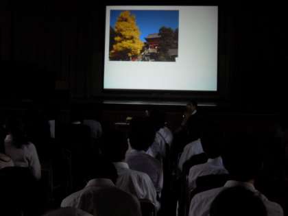 鎌倉時代の歴史的人物について、プロジェクターを使って学習しました。