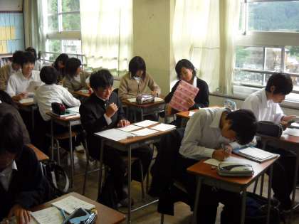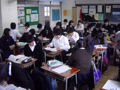 馬場先生が職員室に資料をとりに行っている間、生徒はしっかり自習をしていました。