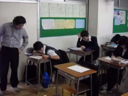 竹信先生の指導で、段階的に難しくなる漢字の読みに挑戦していました。