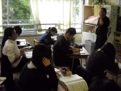 粕谷先生の指導で、ノートをしっかりと取っていました。