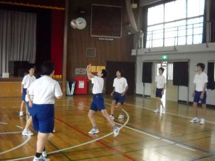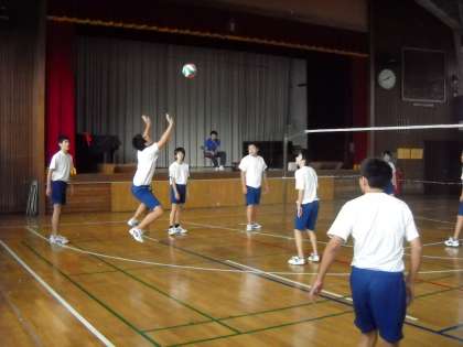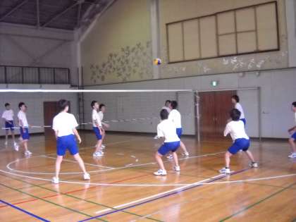 高野先生の指導で、体育館でバレーボールのゲームを行っていました。