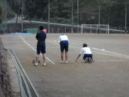 顧問の鶴田先生が見守る中、スタート練習をしていました。