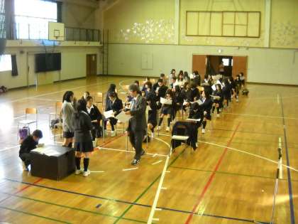 放課後、合唱祭のステージ上の動きを確認するために、体育館で担当者が集まり、リハーサルを行いました。