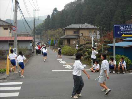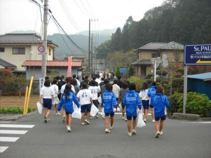 午後3時から、部活動を中心とした有志で地域清掃の開始です。