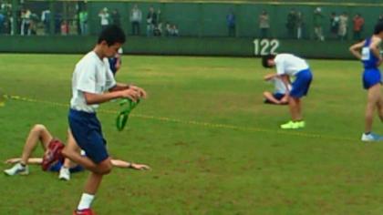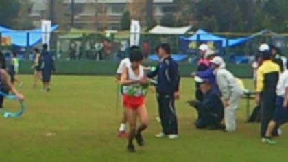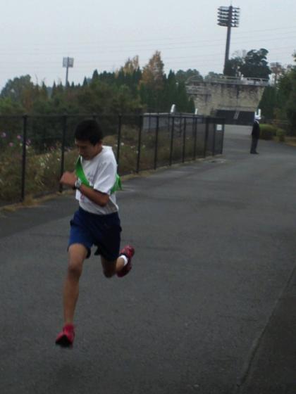 2走は松元くん、3走は河野くんです。町の中を走ります。