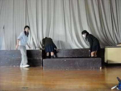 合唱祭の練習で使用した雛壇を、実行委員が中心となってステージから運び出しをしました。