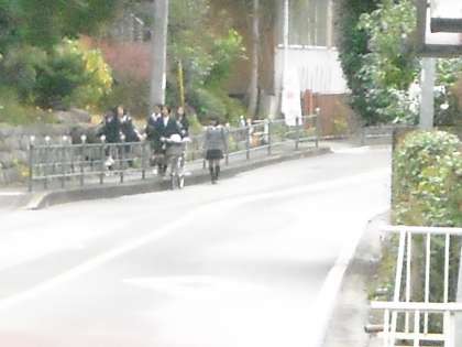 陣馬街道を直進して歩いて来る生徒も大勢います。