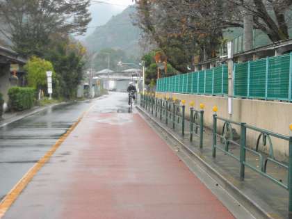 陣馬街道は車の通行量が多いので雨の日は特に気を付けましょう!