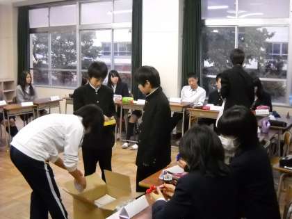 最後に、青少対行事の「地域ふれあいスポーツ大会」の参加賞であるボールペンに、シールを貼りました。
