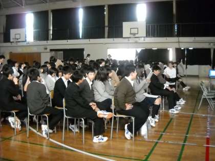 5時間目に体育館で、修学旅行の学習発表会を行いました。
