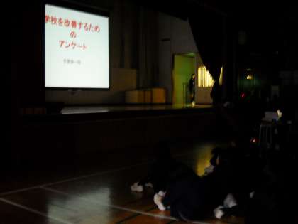続いて、生徒会の学校生活アンケートの集計結果と分析の発表がありました。