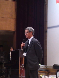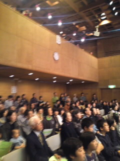 ホールは満員です。2年生の発表のあとに立山校長先生の挨拶がありました。