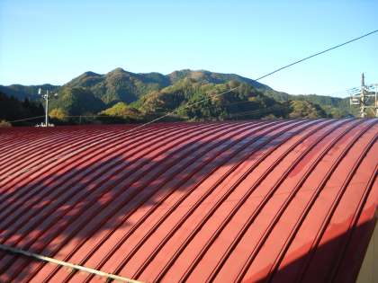 体育館の屋根にヒマラヤスギの長い影が出来ています。