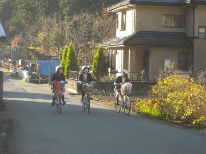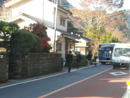 バスで登校する先生方に交じって生徒もいました。