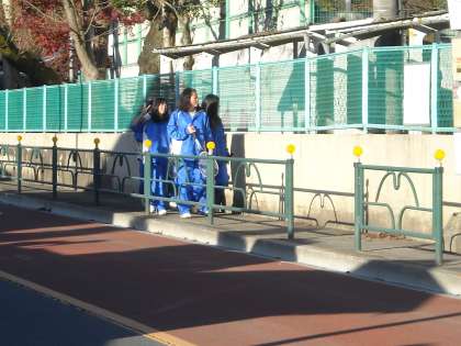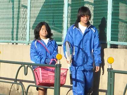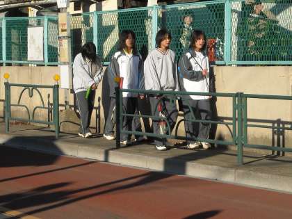 多目的広場で朝練習をしたソフトテニス部女子が元気に帰ってきました。