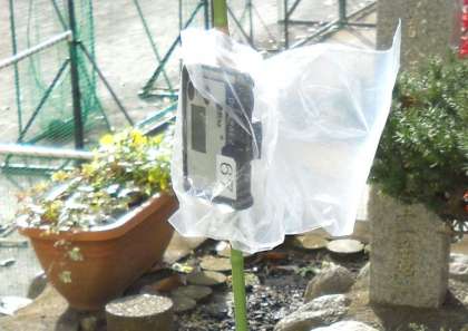 専用の測定器で、玄関前と砂場近くの数値を計測しました。