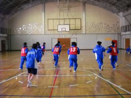 坂本先生が審判をして、バスケットボールの試合をしていました。