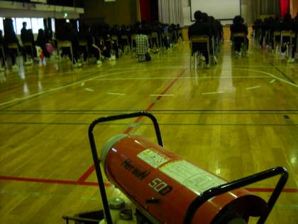 気温が低かったので、ジェットストーブ「ホットガン50D」1号機と2号機が活躍しました。