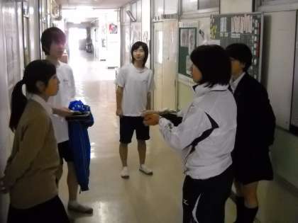 昼休みに、部活終了後、清掃したごみの処理方法について、話し合いをしました。