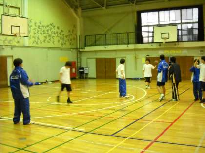 半面を使って男子が練習をしていました。