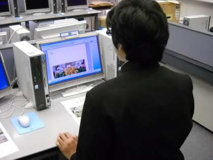 パソコン室で世界ラン展に向けて、資料作りのための調査活動をしていました。