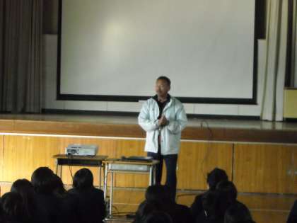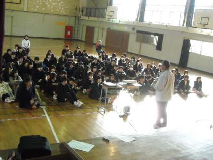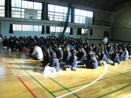 最後は学年主任の粕谷先生のお話でしたが、みんな寒い中、集中して聞いていました。