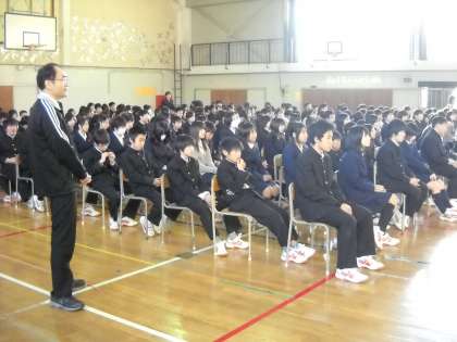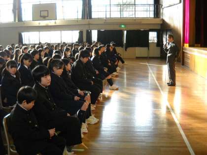 防犯に関しては冬休みを前にして、日ごろの生活における安全についての講話でした。