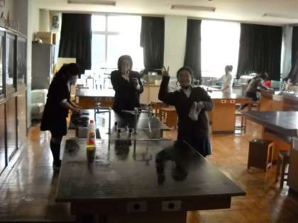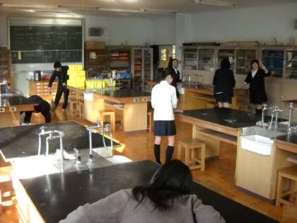 第二理科室です。机の上を念入りに拭いていました。