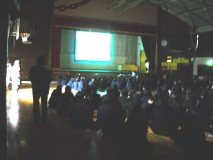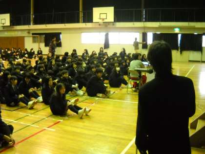 これから進路を決めていく3年生のために、ファンキー・モンキー・ベビーズの「あとひとつ」にのせて、応援メッセージの発表がありました。