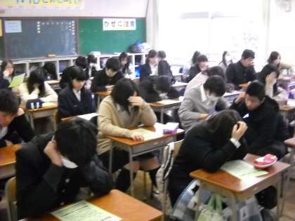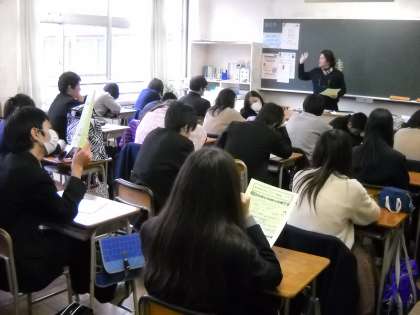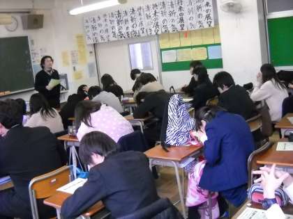担任の竹信先生が、都立高校の出願について説明をしていました。
