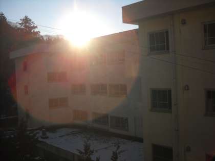 朝日が強烈です。