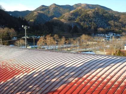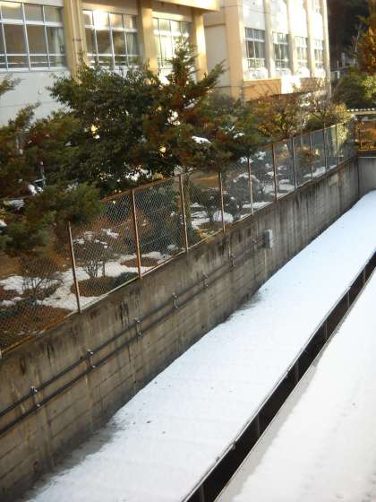 体育館の屋根の雪はなくなりましたが、霜降り状態の復活です。