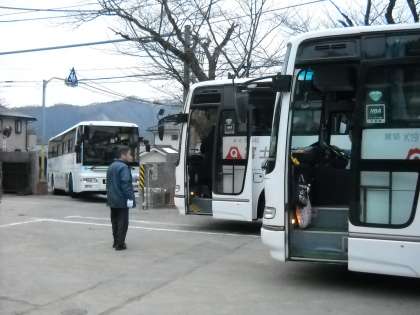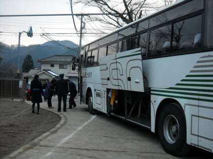 今日から始まる1年生の移動教室のためのバスが入ってきました。